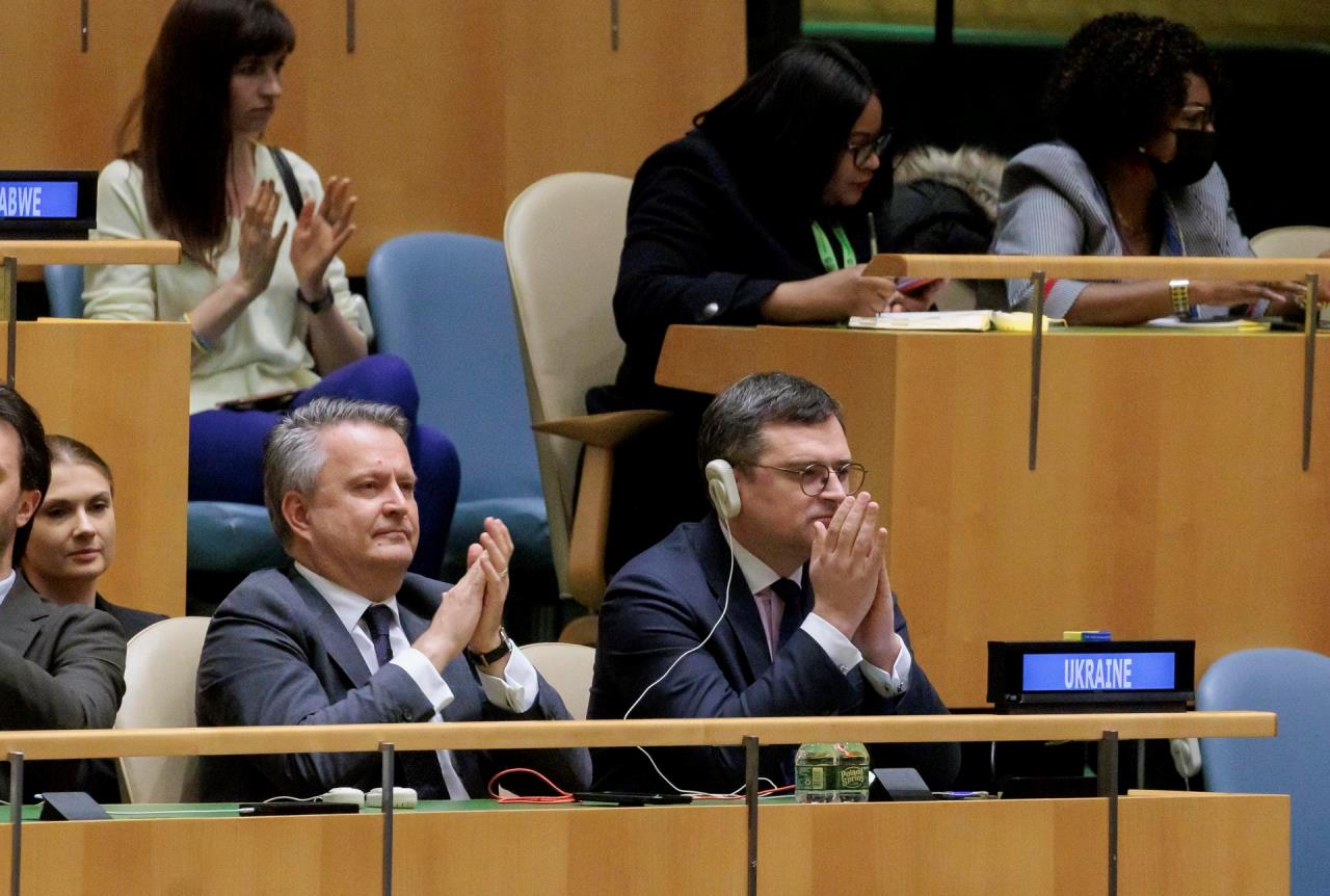 El recurso a la Asamblea General (aunque sus resoluciones son simbólicas) se ha convertido en habitual desde el comienzo de la guerra ante la inoperancia del Consejo de Seguridad, lastrado por el derecho a veto de Rusia, que ha impedido que se apruebe una sola resolución (que en su caso son de obligatorio cumplimiento).