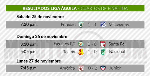 Minuto30.com- Los resultados de los partidos de ida de los cuartos de final de la Liga Águila II-2017 mantienen a Independiente Medellín con opciones de lograr un cupo a la Copa Libertadores.