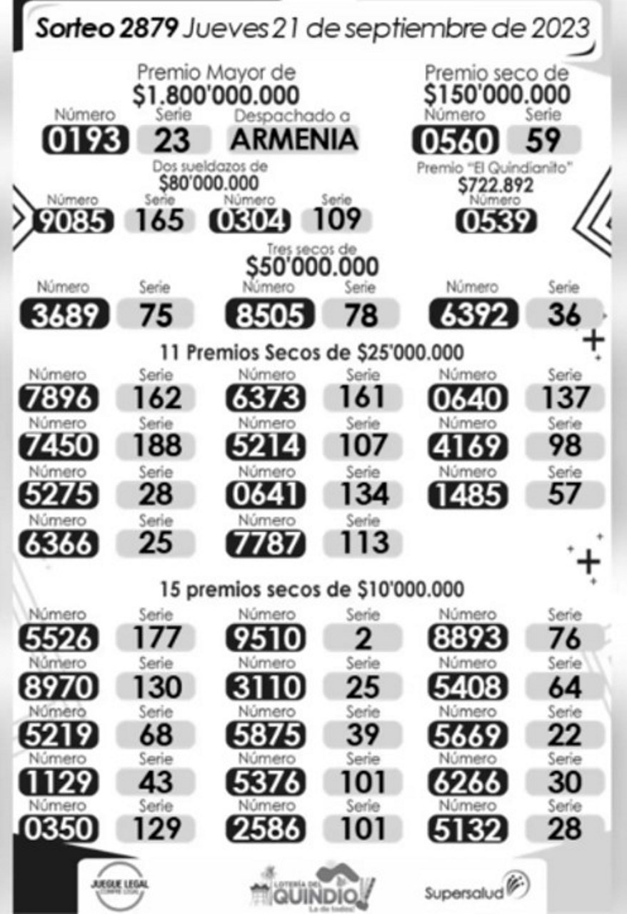 El número ganador del sorteo 2814 de la Lotería del Risaralda, jugado el 22 de septiembre es… 9989, de la serie 107.