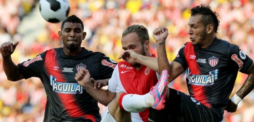 En la imagen, los jugadores de Junior de Barranquilla Juan Domínguez (d) y Luis Narvaez (i). EFE.