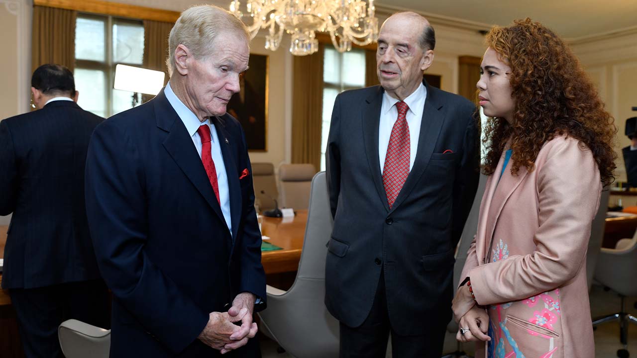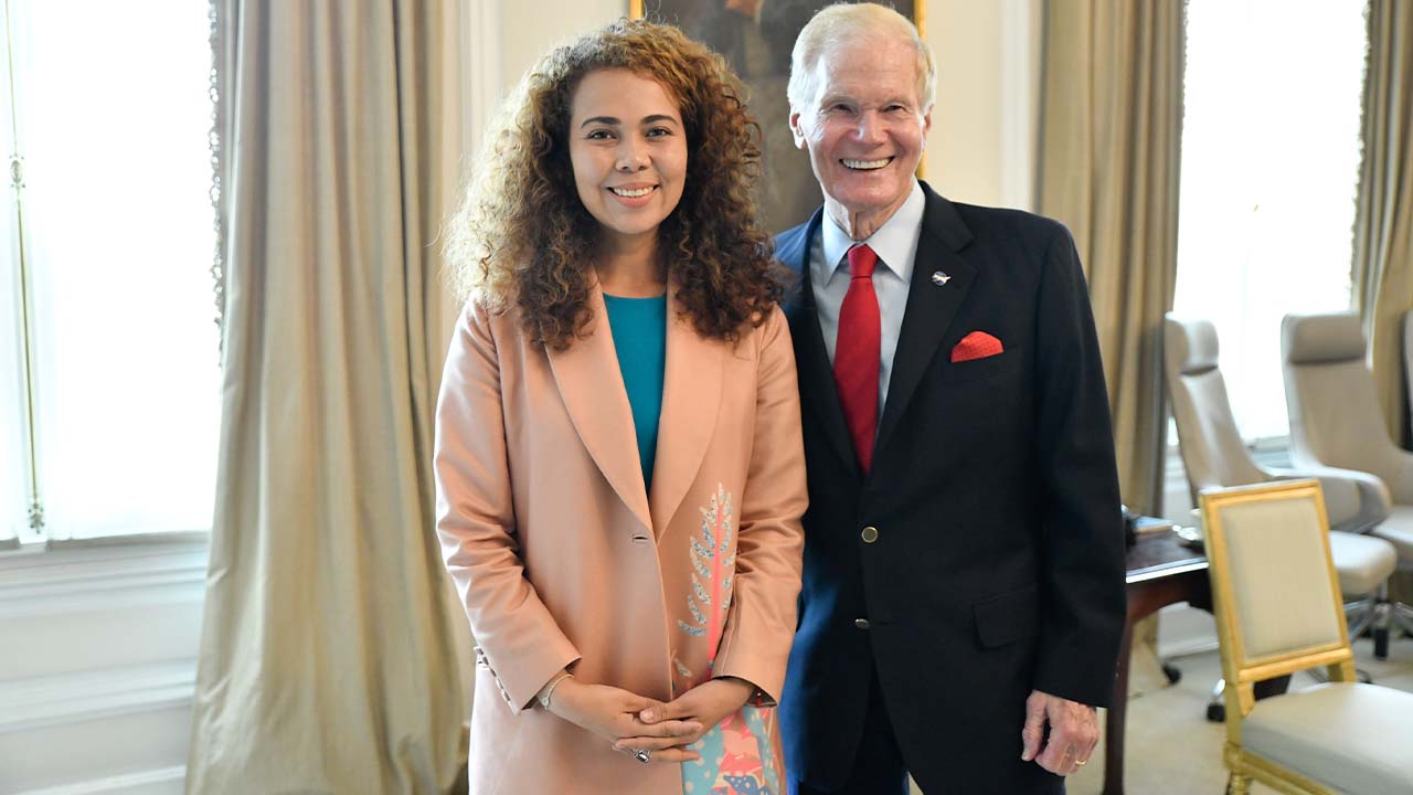 La ministra resaltó que con la NASA “estaremos trabajando en un acuerdo, una hoja de ruta, para fomentar la participación científica en proyectos en materia de desarrollo de tecnologías espaciales, en materia de desarrollo de tecnologías que puedan contribuir a mitigar las consecuencias del cambio climático”.