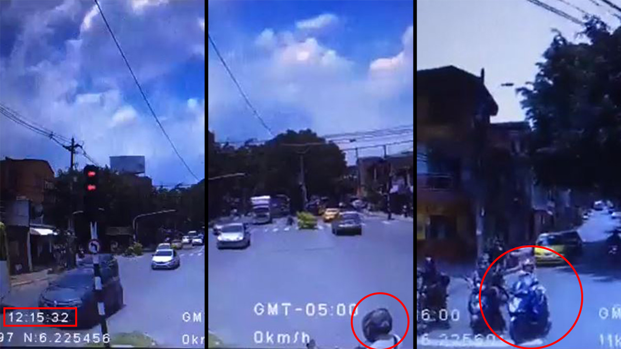 En el video no se alcanza a ver el parrillero de la moto y, la hora que registra la cámara, no coincide con el momento en que ocurrió el siniestro vial.