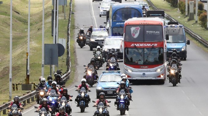 Fuerte operativo de la Policía custodio el autobús que traslada a los jugadores del River Plate