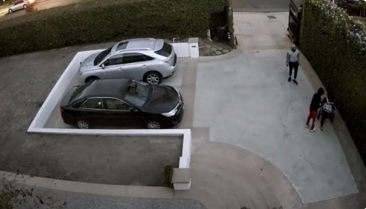 El Departamento de Policía de Los Ángeles, Estados Unidos, publicó el video en que dos ladrones que arrinconaron e intimidaron a la mujer antes de que pudiera ingresar a su casa.