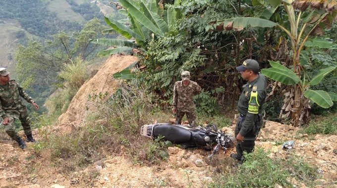 Según detallaron las autoridades fue gracias a la información de la comunidad que indicaron que los presuntos responsables se habrían dirigido a la vereda Naranjal, descubrieron que los ladrones abandonaron la moto en un pequeño abismo al sentirse acorralados, logrando así recuperar la motocicleta que había sido reportada.