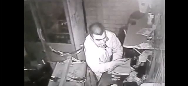 El sujeto irrumpe en el local promediando la 1 de la madrugada, linterna en mano y sin percatarse de la cámara de seguridad, toma rápidamente la caja registradora y emprende la huida.