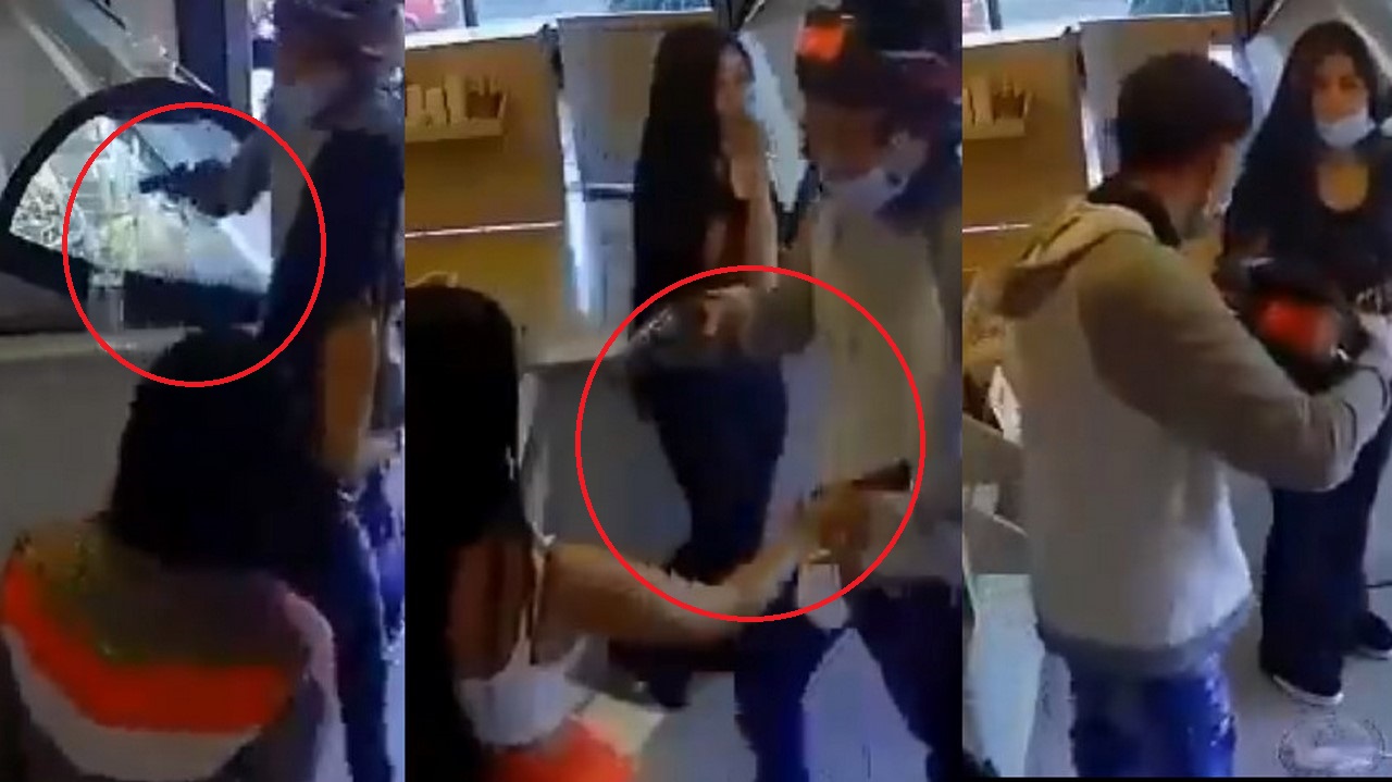 En el video se observa cuando el hombre aborda una por una a las mujeres, a una le quita -además del celular- lo que sería una cadena, dejando finalmente a tres de ellas sin su equipo móvil.