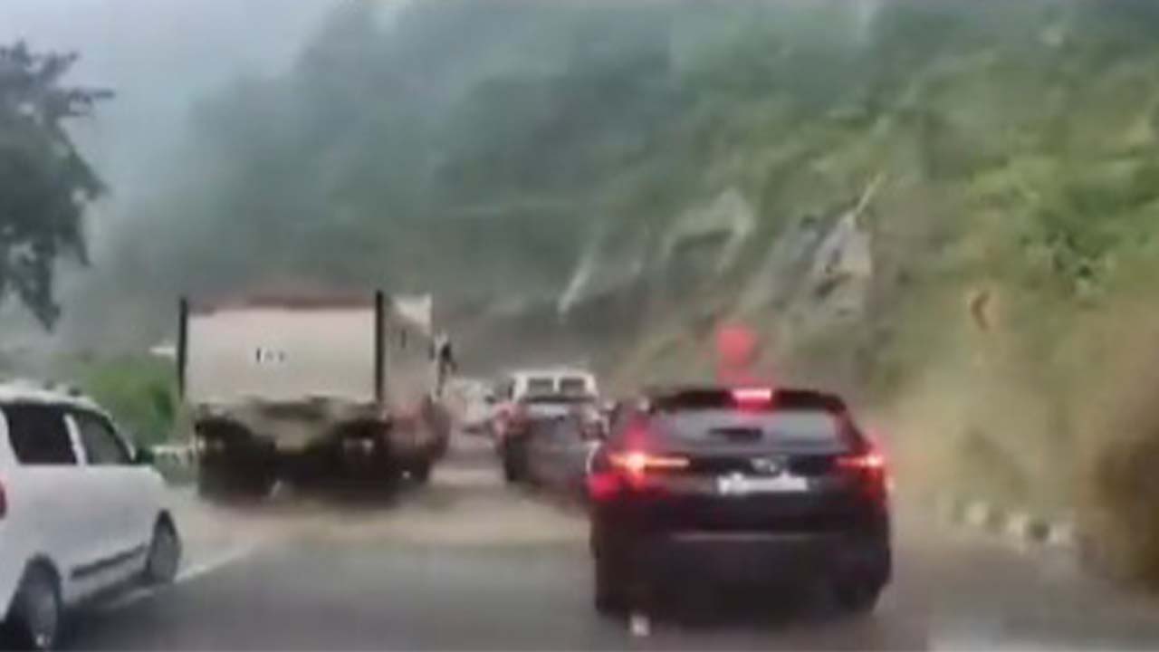 A través de redes sociales se conoció el video, que rápidamente se ha vuelto viral, que deja ver una fila de carros a la espera de que dieran paso, pero de la nada salieron gigantescas rocas que aplastan por completo dos carros debido a un deslizamiento.