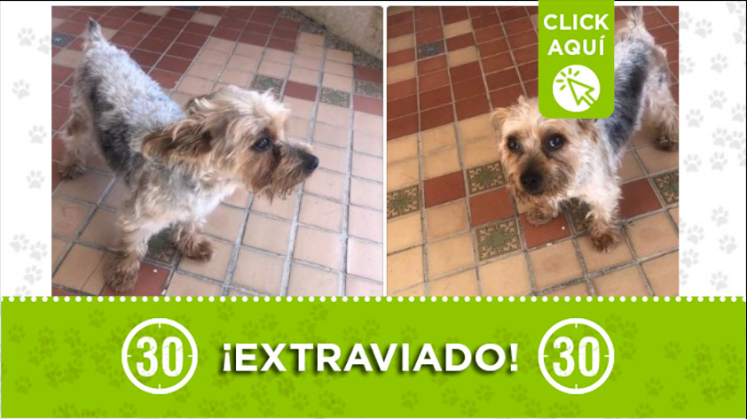 Este perrito llamado “Rocky” se perdió en la vereda El Noral del municipio de Copacabana, Antioquia.