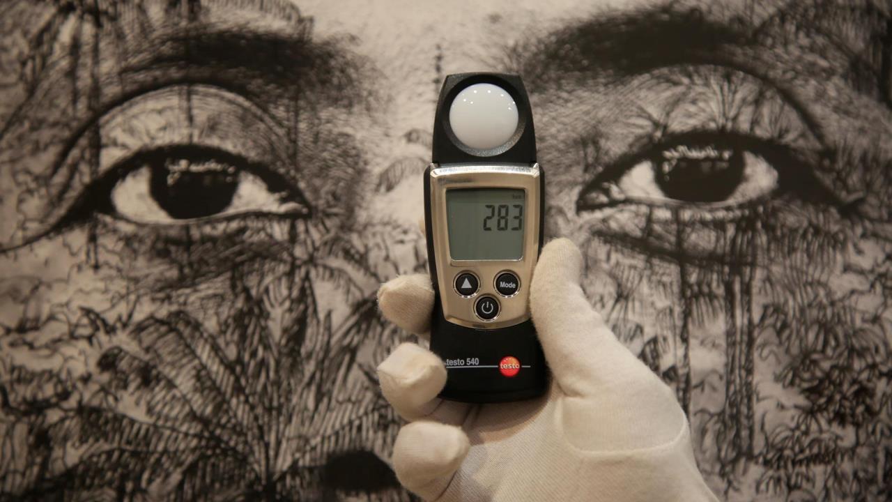 Especialistas en montaje de obras artísticas del Centro de Formación de la Cooperación Española de Cartagena de Indias ajustan hoy los últimos detalles de la exposición “Hijas del agua”, sobre las comunidades indígenas colombianas, del fotógrafo Ruvén Afanador y de la artista Ana González, en Cartagena (Colombia). EFE/Ricardo Maldonado Rozo