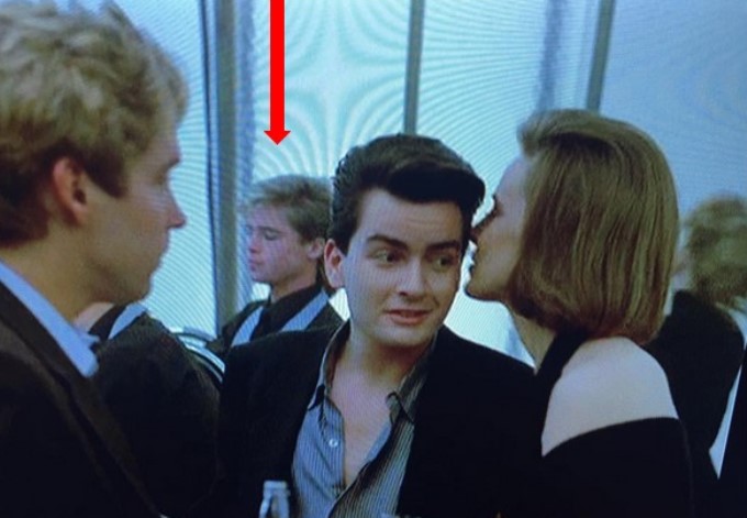 @charliesheen check out Brad Pitt in the background as a server!!! No Man’s Land circa ’87 bang! #tbt © x!