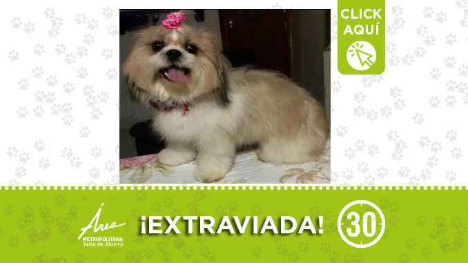 Sacha es una perra que se perdió en el barrio Rosalpi, en Bello, y su familia la busca. La mascota se extravió cerca a mercados del norte, y tiene dos colas con moños rojos y un collar en el cuello. Si la ha visto, puede comunicarse al 321 363 52 11.