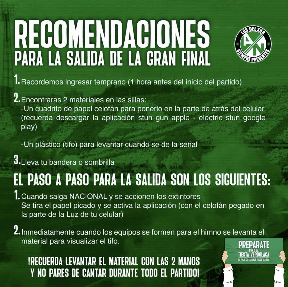 Cuando salga Nacional, y se accionen los extintores en la pista atlética, los hinchas deberán lanzar el papel picado y de inmediato activar la aplicación que les pidieron descargar, con el papel celofán pegado en la parte de atrás del celular.