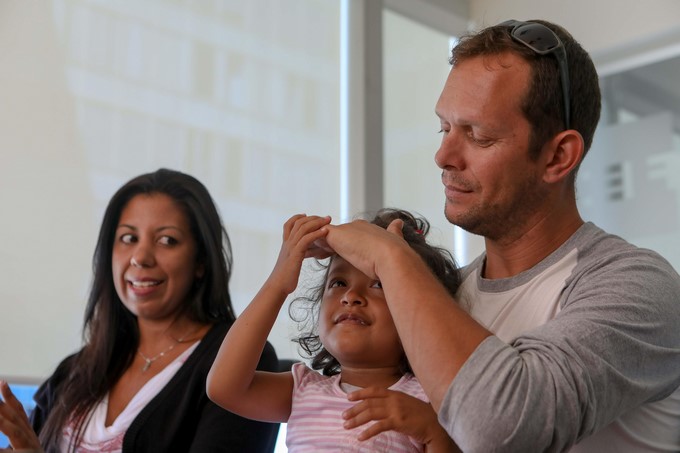 Carolina Barrios (i) y Gustavo Lecourtuois (d) posan con su hija María Fernanda