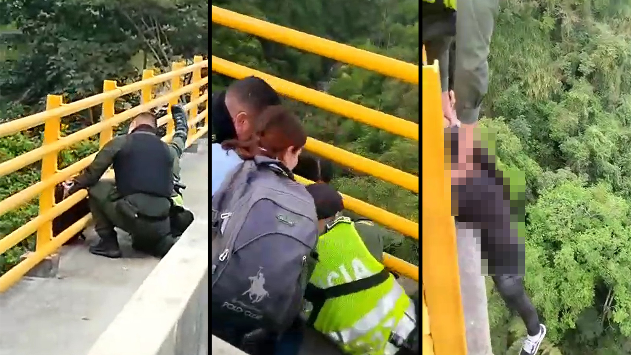 Una mujer que intentó suicidarse desde un puente, fue agarrada a tiempo, en una acción conjunta entre la Policía Nacional y varios ciudadanos.