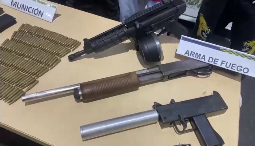 Además de las armas, les encontraron equipos de comunicación, cuatro libras de marihuana y munición de fusil, de pistola y para escopeta calibre 12.