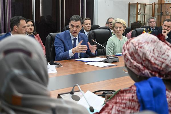 Así, Sánchez y Von der Leyen se volcaron en transmitir al presidente mauritano, Mohamed Ould Ghazouani, un mensaje de colaboración con el desarrollo económico de Mauritania que está ligado también con la perspectiva migratoria.