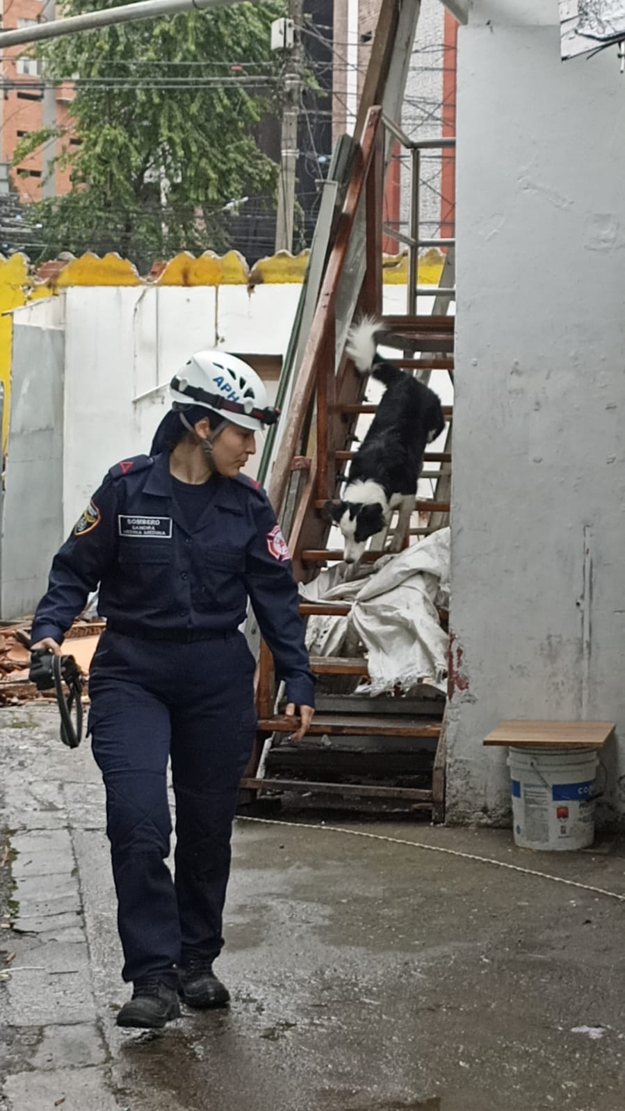 Sandra, en compañía de su perro de rescate Dasha, son uno de los binomios colombianos que está lista y preparada en caso de ser llamados a apoyar las labores de búsqueda en las ruinas en Turquía y Siria.