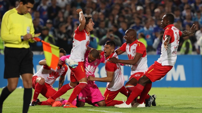El gol de Santa Fe, dirigido por el uruguayo Guillermo Sanguinetti, llegó al minuto 11 después de que el juvenil Edwin Herrera intentara enviar un centro que terminó desviando un defensa y que posteriormente tomó el volante Baldomero Perlaza, quien remató desde media distancia y abrió el marcador.