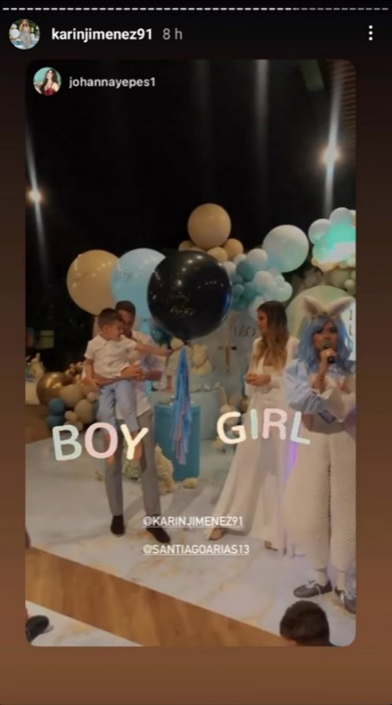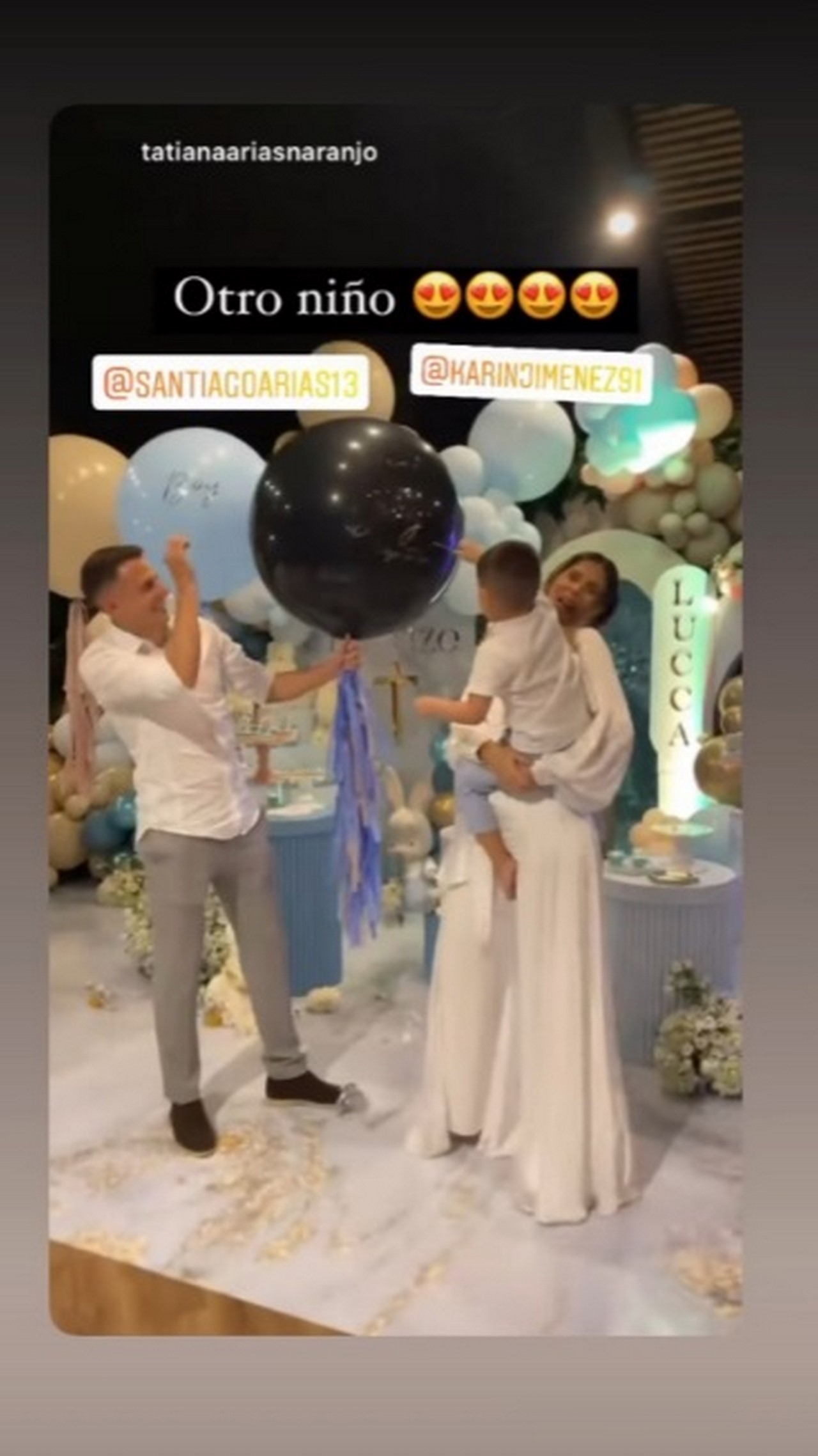 La esposa del futbolista Santiago Arias, Karin Jiménez, publicó varias historias de Instagram en las que dejaba ver la fiesta que hizo en Medellín para dar a conocer el sexo de su tercer hijo.