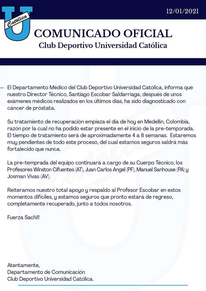 Comunicado completo Club Deportivo Universidad Católica de Ecuador