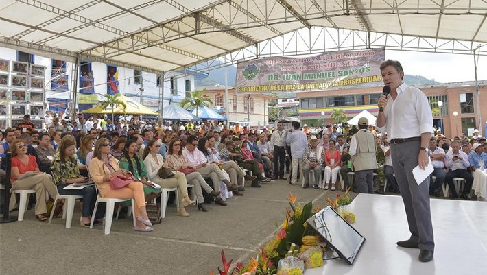 Minuto30.com .- El Presidente de la República, Juan Manuel Santos, confirmó este viernes que el papa Francisco lo recibirá en Roma. “El segundo mensaje es de agradecimiento, aquí desde Pueblo Rico (Risaralda), a Su Santidad Francisco I. Me informaron esta mañana que nos va a recibir, a mi familia y a mí”, indicó el Jefe […]