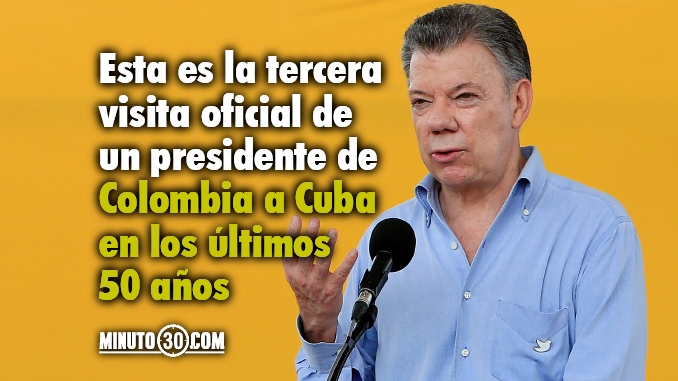 En el viaje, que según la Cancillería es “una invitación del Gobierno de Cuba”, el mandatario colombiano está acompañado por las ministras de Relaciones Exteriores, María Ángela Holguín, y de Comercio, Industria y Comercio, María Claudia Lacouture.