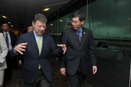 El Presidente de la República, Juan Manuel Santos, llegó este domingo a Singapur, donde realizará una visita de Estado, dentro de un viaje a Asia que también incluye a la República Popular China y que busca impulsar el intercambio de Colombia con la región de Asia Pacífico.