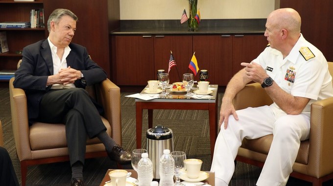 Tras reseñar la iniciativa contra las drogas y el proceso de paz, Santos aseguró que el Southcom fue determinante en el fortalecimiento del Ejército y la Policía colombianas, que dio paso más tarde a un acuerdo de paz con la entonces guerrilla de las Fuerzas Armadas Revolucionarias (FARC).