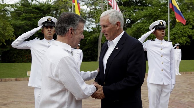 Juan Manuel Santos (i), y el vicepresidente de EE.UU., Mike Pence. EFE