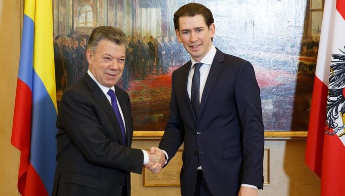 El presidente de Colombia, Juan Manuel Santos, realiza hoy una visita oficial a Austria en la que se reunirá con su homólogo austríaco, Alexander Van der Bellen, y con el jefe del Gobierno, Sebastian Kurz, además de con otros representantes del mundo político y empresarial. El mandatario colombiano tendrá primero un encuentro con empresarios y […]