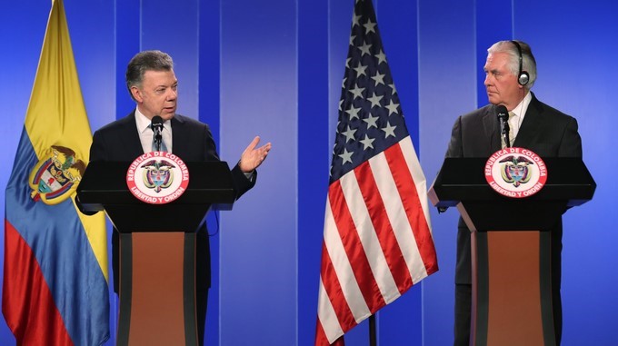 Santos y Tillerson, que está en una gira por América Latina, se reunieron en la Casa de Nariño para conversar sobre asuntos de la agenda bilateral y regional, como la lucha contra el narcotráfico y la crisis de Venezuela, a cuyos ciudadanos Colombia seguirá “brindando asistencia humanitaria”, afirmó el jefe de Estado.