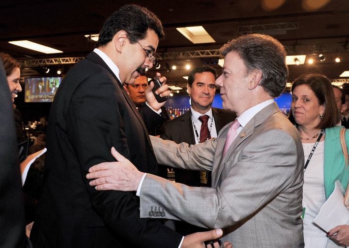 Maduro incluso amenazó con retirarse de las negociaciones de paz que se celebran en La Habana (Cuba) entre representantes del Gobierno colombiano y de la guerrilla de las Fuerzas Armadas Revolucionarias de Colombia (FARC) en represalia por la cita entre Santos y Capriles.
