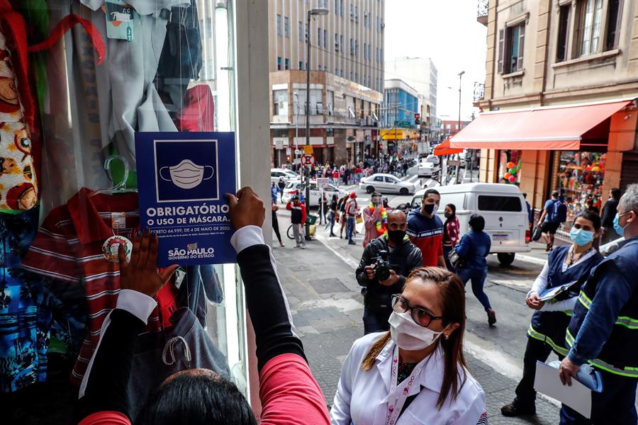 En declaraciones a los periodistas, Covas pidió a los paulistas que eviten escenas como las protagonizadas la semana pasada en Río de Janeiro, donde cientos de personas se aglomeraron sin máscaras en las calzadas del acomodado barrio de Leblon en la primera noche de reapertura de bares y restaurantes de la capital fluminense.