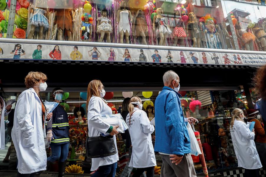 La Alcaldía de Sao Paulo, la mayor ciudad de Suramérica con unos 12 millones de habitantes y epicentro de la pandemia del coronavirus en Brasil, realizó este miércoles una operación para fiscalizar y advertir sobre el uso obligatorio de mascarillas para prevenir el contagio del COVID-19.