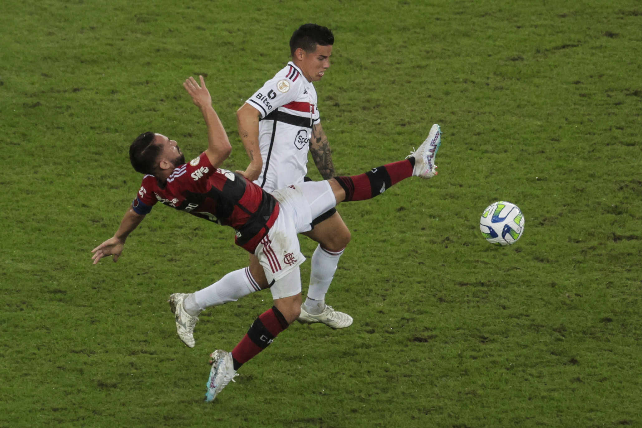 El mediapunta colombiano James Rodríguez, otro de los refuerzos del Tricolor de Morumbí, no jugó y estuvo sentado en el banquillo durante todo el encuentro.