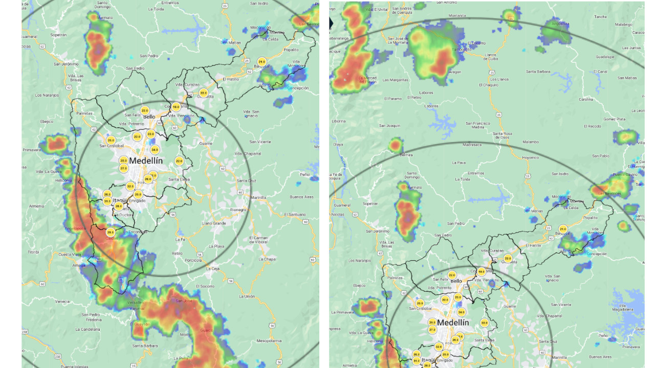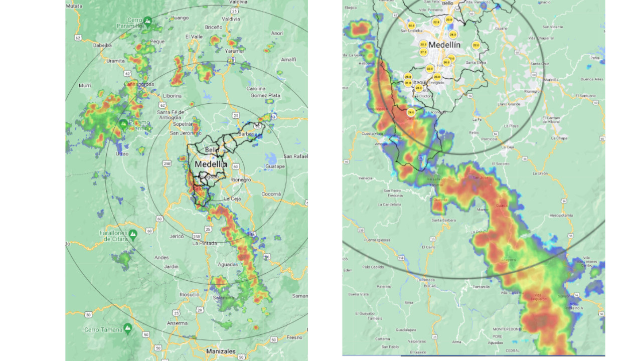 “Se espera que se registren altas intensidades sobre el casco urbano de Caldas y Barbosa y adicionalmente sobre Sabaneta y Envigado, en los próximos minutos”, informaron a través de la red social X (conocida como Twitter).