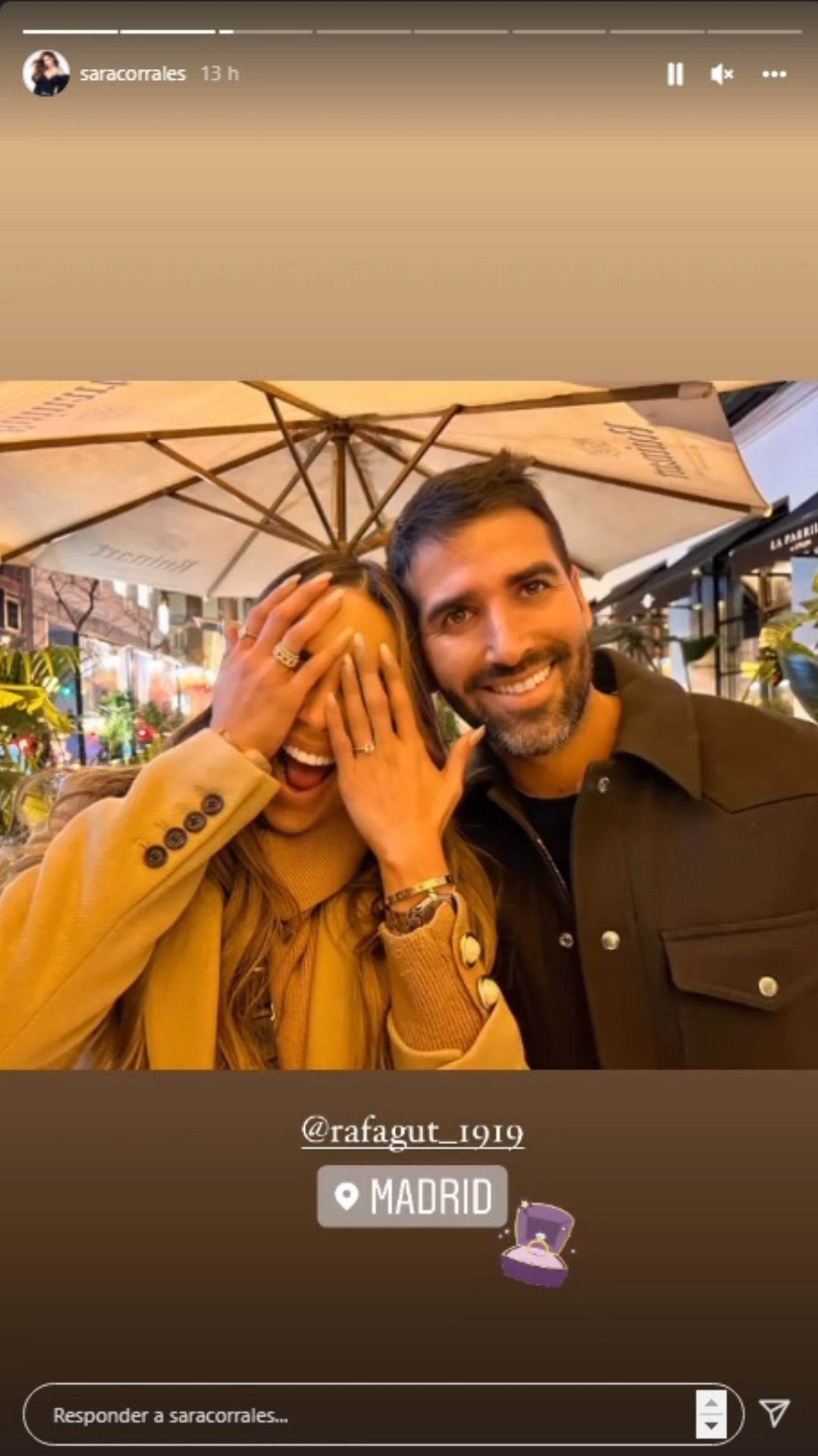 El pasado jueves 24 de febrero Sara Corrales publicó varias fotografías en su cuenta de Instagram en la que dejaba ver su anillo de compromiso. Al parecer, la pedida de mano había sucedido en su viaje a Madrid, España.