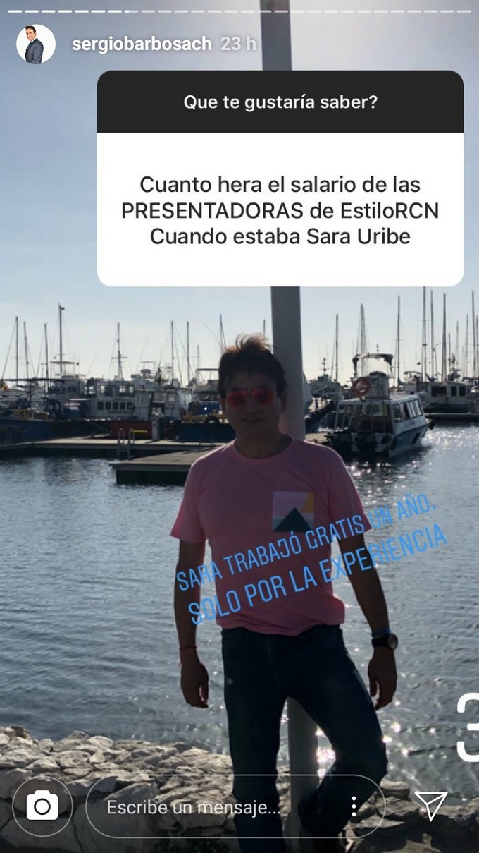 El juego de Instagram “hazme una pregunta”, sirvió para que Sergio Barbosa revelara que Sara Uribe trabajo un año gratis en “Estilo RCN”, programa que él dirigía.