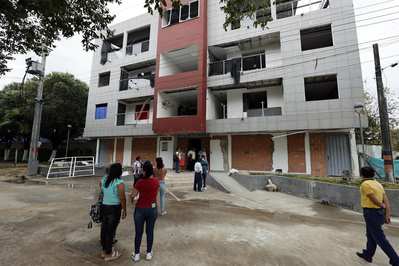 Vista de los destrozos causados por un atentado con coche bomba frente a la sede de las Organizaciones Sociales de Centro Oriente, el 17 de febrero de 2022 en Saravena, departamento de Arauca (Colombia). EFE/ Mauricio Dueñas Castañeda