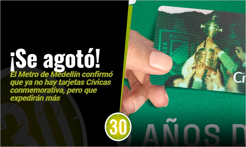 El Metro de Medellín anunció que las tarjetas edición especial de los 35 años de la Libertadores se agotaron en todos los puntos de venta.
