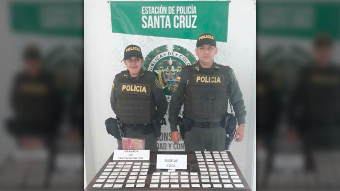 Al revisar el paquete abandonado por el hombre, la Policía identificó 150 gramos de base de cocaína y una granada de fragmentación que probablemente pertenecía a los grupos delincuenciales de la zona.
