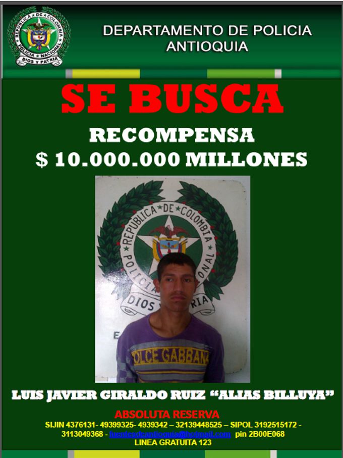 Se busca: Luis javier Giraldo Ruiz, alias “Billuya”