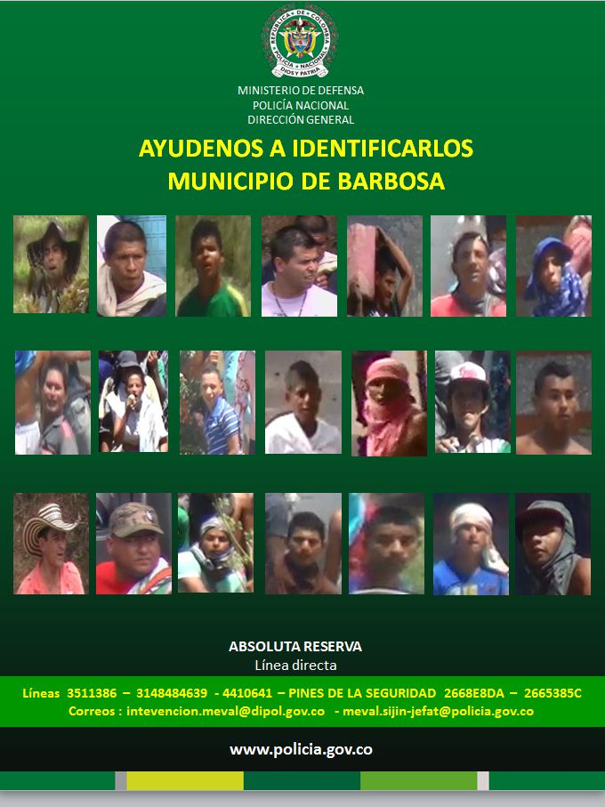 Autoridades locales y regionales piden a la comunidad ayuda para ubicar a los responsables de los ataques en Barbosa que dejaron cuantíosas pérdidas materiales e incluso heridos, por los desmanes provocados en medio de los desórdenes.