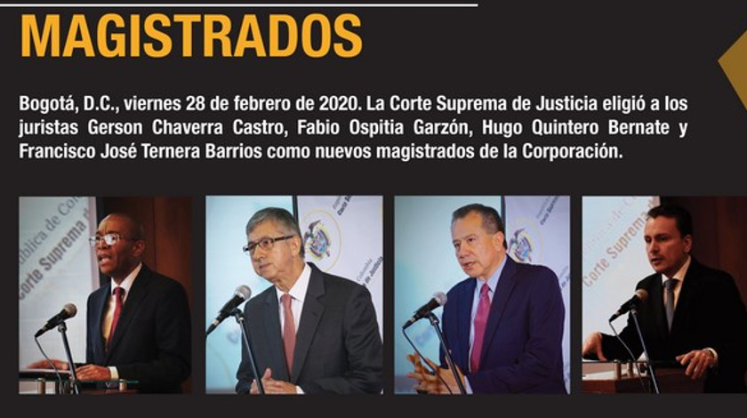 En las últimas horas la Corte Suprema de Justicia confirmó que eligió a tres magistrados de la Sala Penal y uno de la Sala Civil, se trata de los magistrados Hugo Quintero, Fabio Ospitia, Gerson Chaverra y Francisco Ternera Barrios.