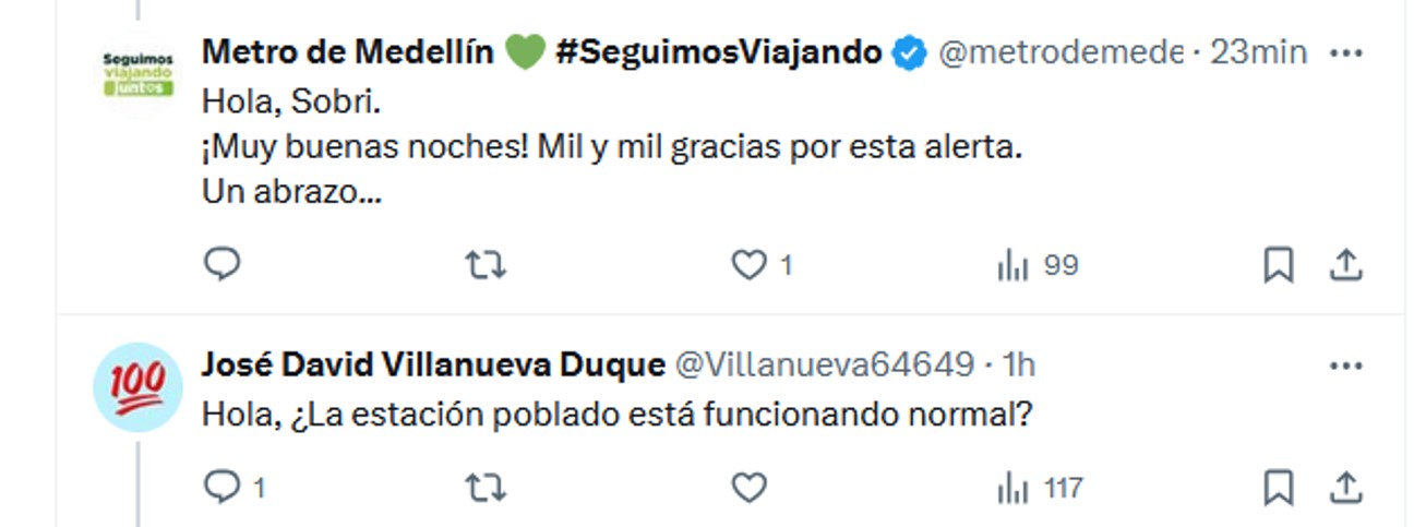 Además, se reporta que la estación del Metro “Poblado” también ha sido afectada por los disturbios, lo que ha alterado el servicio y generado aún más incomodidad en los usuarios.