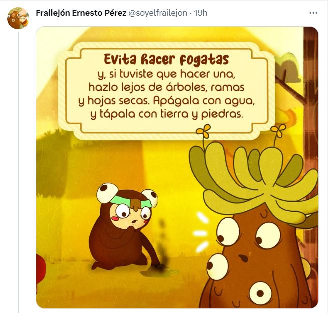 El llamado del querido frailejón es a evitar hacer fogatas o en caso extremo, si no se puede evitar, entonces hacerlas lejos de los árboles, ramas u hojas secas.
