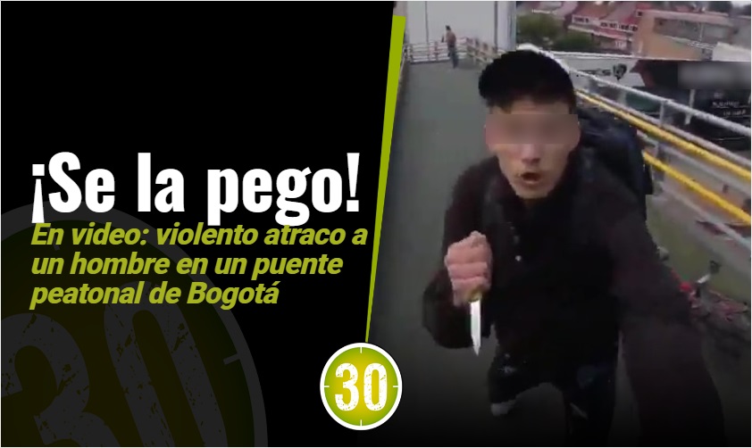 ¡Se la pego!. Terror en un puente peatonal de Bogotá, en video quedó registrado un violento atraco con cuchillo