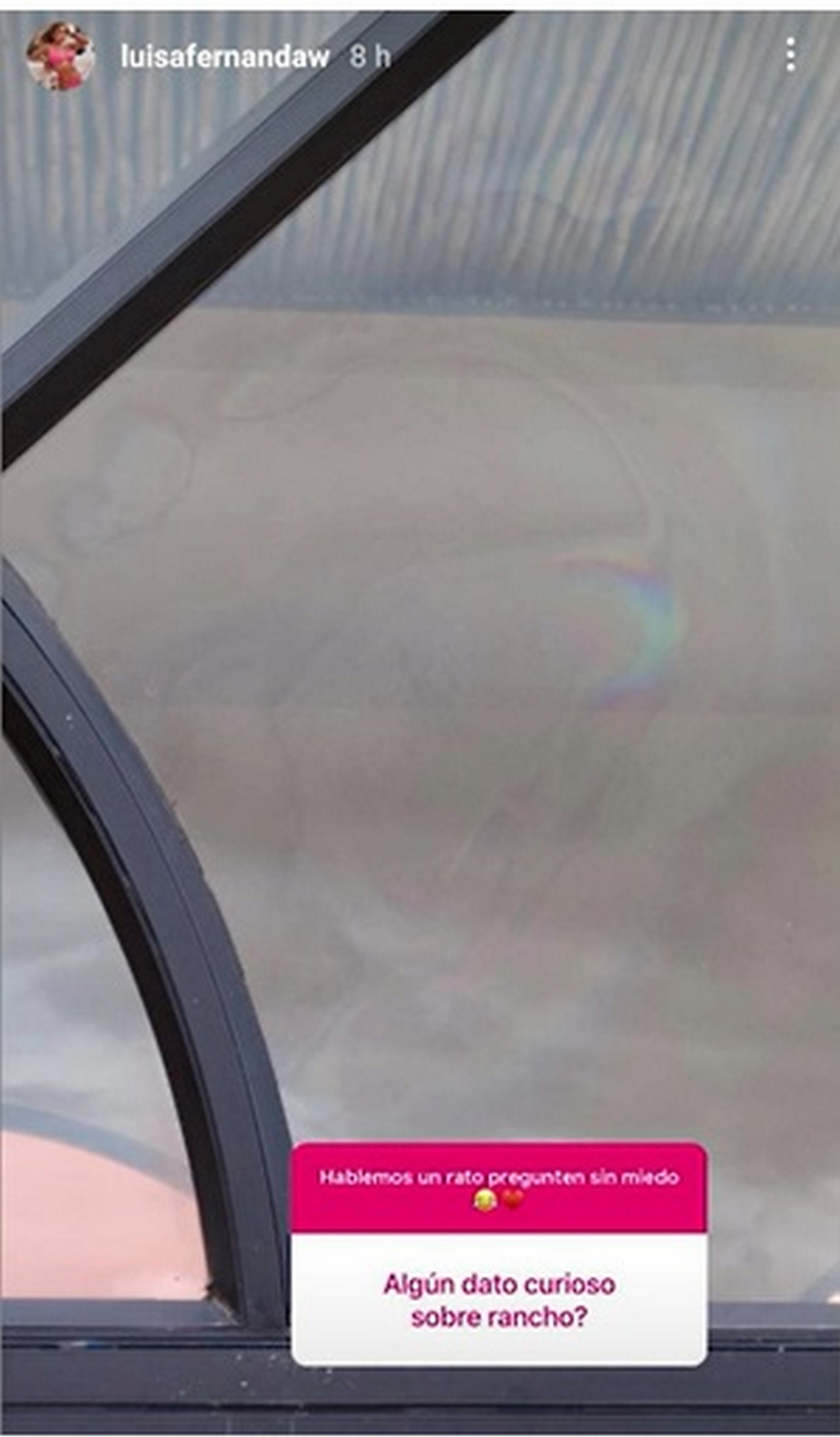 “Resulta que en Rancho MX estaban limpiando los vidrios y cuando estos se secaron apareció una imagen. Díganme ustedes qué ven o qué les parece”, detalló la influencer a través de sus historias en Instagram.