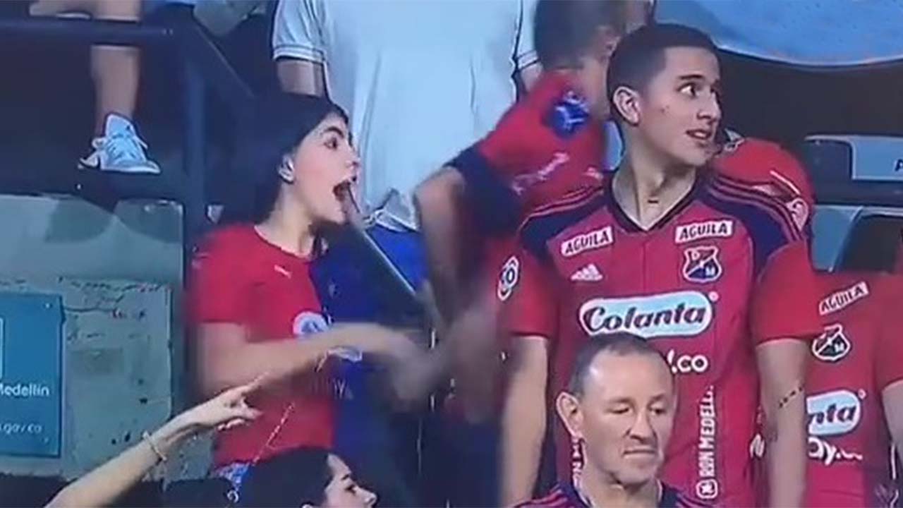 En el más reciente compromiso del ‘Poderoso’ en el Atanasio Girardot, la cámara captó una joven y un muchacho conversando tranquilamente, sin la más mínima ‘malicia’.